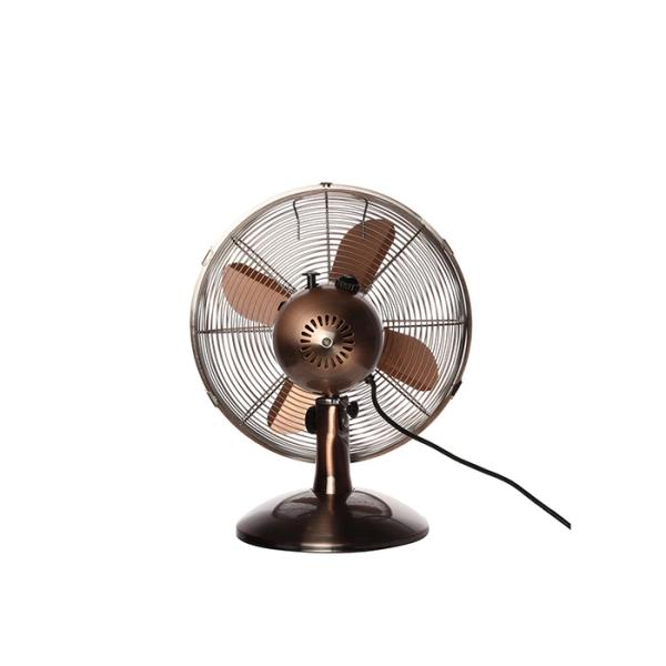 Our Vintage Retro Table Desk will provide you with endless decoration options for any space in your home . Available in a variety of natural and vibrant color selections , they are perfect for decorating bookcases , shelving , desks or end-tables with something that's beautifully made and uniquely designed . Their small fan size makes these table fans highly functional and appropriate for an office desk fan . Our oscillating table fans for your home or office are as effective at keeping you cool as they are at looking good . Get that oil rubbed bronze look , but with an updated design that is sure to complement any home or office environment . With today’s contemporary design trends , this classic vintage fan with it's sleek and striking metal fan design will transition perfectly in any space . This fan in a copper electroplated finish has been constructed with high quality cast metal and features three speed choices for optimal air cirulation . The fans are just like a beautiful piece of furniture for your home , a home decor accessory that is a stylish way to stay cool .